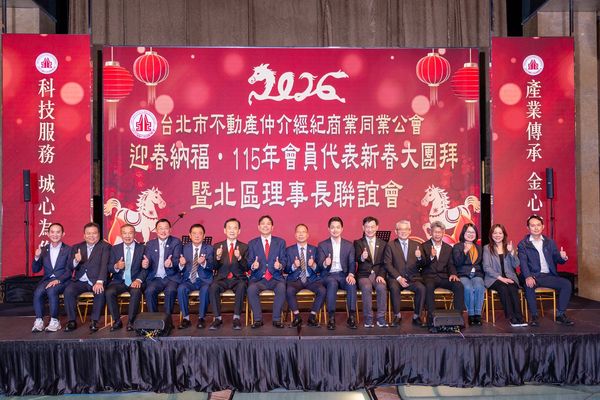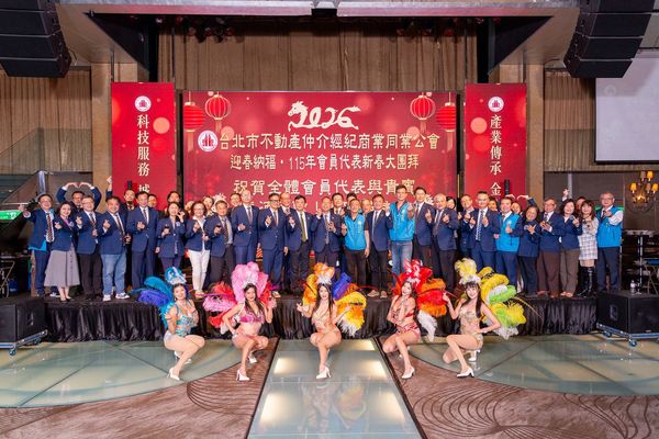 3/16由本會「跨品牌聯誼流通委員會」籌辦「115年會員代表新春聯誼大團拜餐敘暨北區聯誼會」,感謝蔣萬安市長、內政部董建宏政次、內政部地政司林家正司長、地政局王瑞雲局長、社會局姚淑文局長、都更處詹育齊處長、住都中心花敬群董事長、全聯會王瑞祺理事長、營業保證金管委會張世芳主委、六都不動產仲介公會理事長、各縣市不動產仲介公會理事長與不動產業相關單位理事長、立委與市議員、本會歷屆理事長與會員代表們特別撥空蒞臨參與本次活動。晚宴中特安排蘇金城理事長、王應傑創會理事長、黃文雄榮譽理事長、黃鵬䛥榮譽理事長、李同榮榮譽理事長及李忠郎副理事長表演流行舞蹈,祝賀各會位員代表業績長紅,活動圓滿成功,本次活動近450人參與。  |