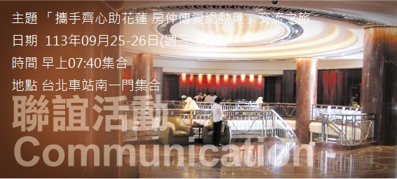 | 2024/07/01 | 請踴躍報名9/25-26「攜手齊心助花蓮 房仲傳愛總動員」二天一夜自強活動 |