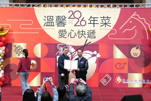 2/12蘇金城理事長與社會服務委員會曹友星主委出席臺北市政府社會局舉辦「115年溫馨年菜,愛心快遞」活動記者會,本會社會服務委員會贊助社會局10萬元購置年菜與物資,讓長者及弱勢家庭能感受年節氣氛與社會溫馨,蘇理事長於會中接受臺北市政府李泰興秘書長頒贈贊助單位感謝狀。   |
